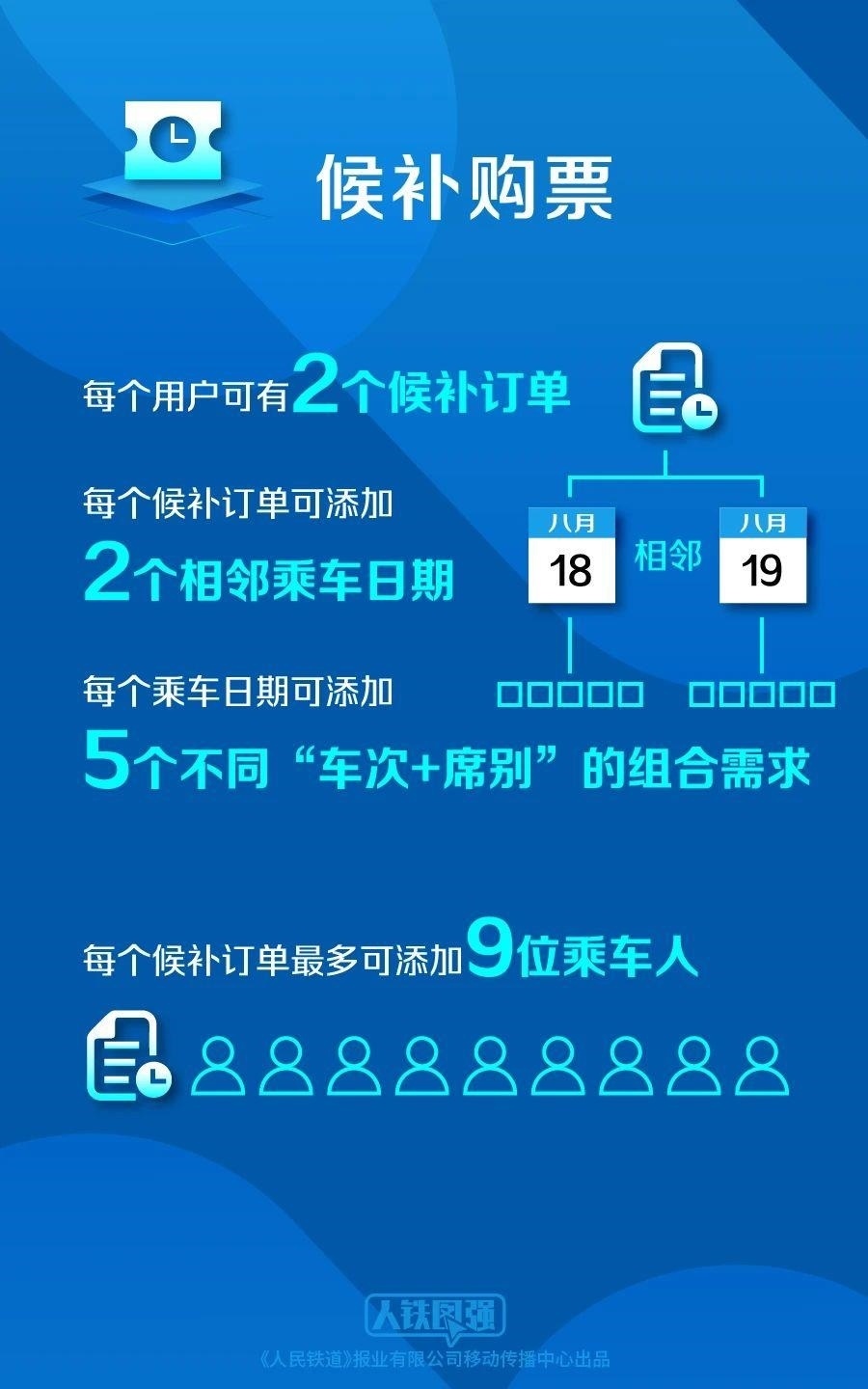 目前,旅客每天可提交發(fā)到站相同或同城不同車(chē)站的兩個(gè)相鄰日期候補(bǔ)車(chē)票,從以前的各2張?jiān)黾拥礁?張。