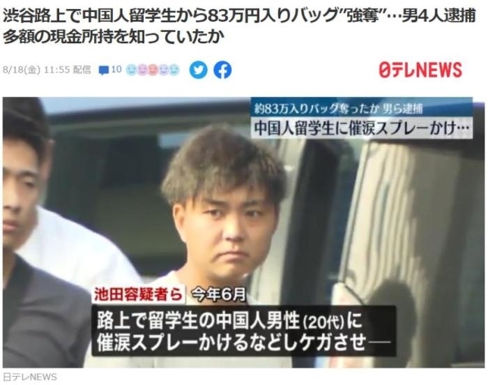 ·在東京搶劫中國留學生的嫌犯落網(wǎng),搶劫金額超4萬元。