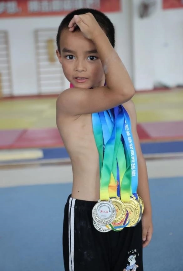 來自湖南湘潭的7歲體操小將蔣鴻暉,在今年省賽勇奪5金2銀。蔣鴻暉的父母均為殘障人士,他從4歲就開始體操訓練生涯,夢想長大能拿奧運冠軍。