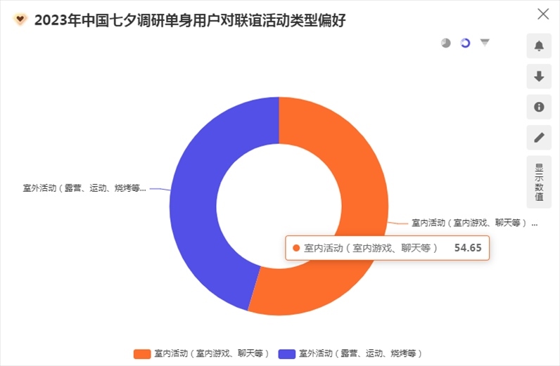 “單身經(jīng)濟與浪漫經(jīng)濟并不沖突?!睆堃愀嬖V記者,今年單身人士參加七夕節(jié)交友聯(lián)誼活動意愿強烈,“有53.77%的表示會參加。在聯(lián)誼活動的選擇上,54.65%的人會選擇劇本殺、密室逃脫、桌游等室內(nèi)活動?!?/p>