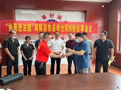 田林法院在“協(xié)商進法庭”調解議事廳成功調解一起裝飾裝修合同糾紛案件。