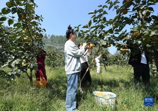 10月18日,在浬浦鎮(zhèn)盤(pán)山村,游客采摘從國(guó)外引進(jìn)的甜柿。