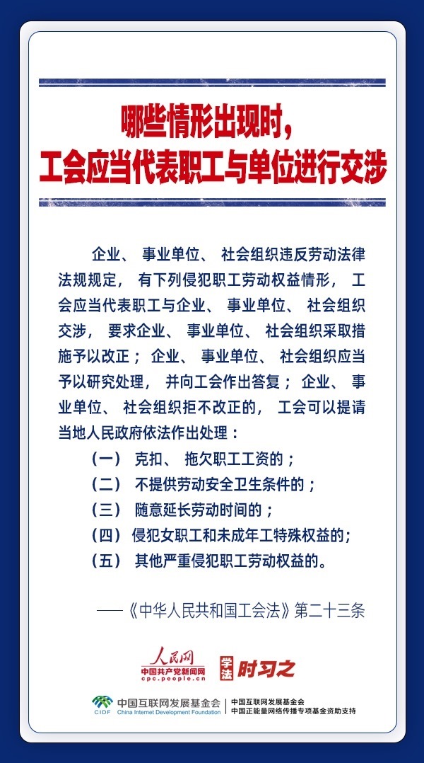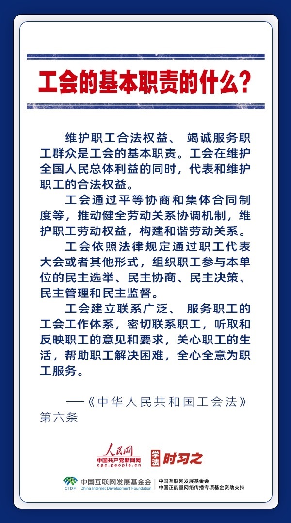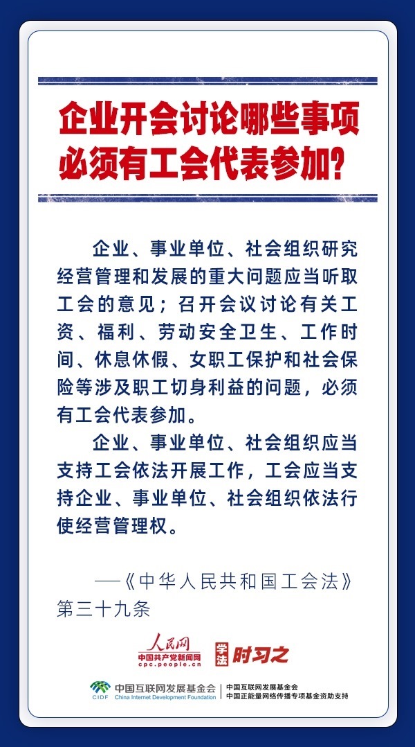 日前,中華全國總工會新一屆領(lǐng)導(dǎo)班子產(chǎn)生。黨和政府歷來重視工會的地位作用,十分注重加強工會法律制度建設(shè),專門為廣大職工制定了《中華人民共和國工會法》。網(wǎng)約車司機、快遞員、外賣配送員能入工會嗎?產(chǎn)業(yè)工人隊伍建設(shè)改革的目標(biāo)是什么?企業(yè)開會討論哪些事項必須有工會代表參加?一起來了解。