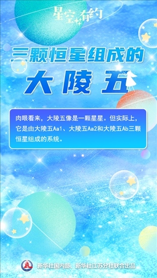 中國科學(xué)院紫金山天文臺(tái)科普主管王科超說,在人們?nèi)庋劭磥?,大陵五只是秋季東北方向天空中一個(gè)遙遠(yuǎn)的亮點(diǎn),像是一顆星星。但實(shí)際上,它是由大陵五Aa1、大陵五Aa2和大陵五Ab三顆恒星組成的系統(tǒng)。這三顆恒星被引力“束縛”在一起,共同組成大陵五這個(gè)三合星系統(tǒng)。系統(tǒng)之中三顆星的相對位置還會(huì)發(fā)生變化,并影響到大陵五的亮度。天文學(xué)上把這種亮度時(shí)常變化的恒星或恒星系統(tǒng)稱作變星。大陵五也是秋季星空著名星座英仙座中的第二亮星。