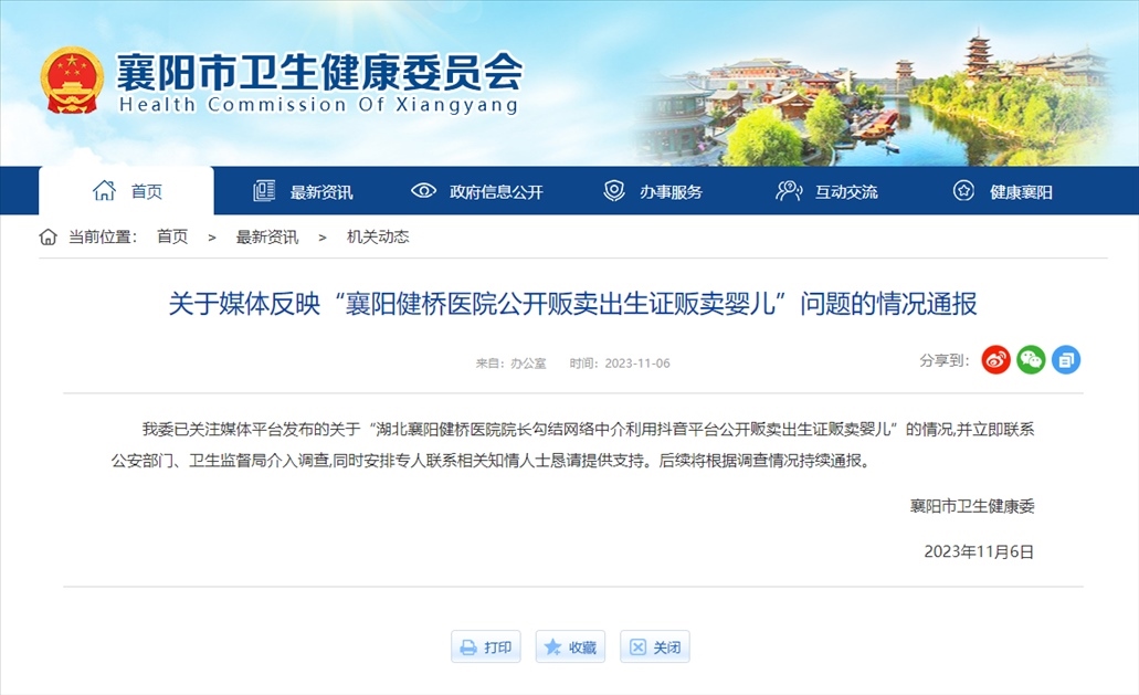 ·醫(yī)院院長被舉報(bào)涉嫌販賣出生證,襄陽衛(wèi)健委通報(bào):聯(lián)系公安部門、衛(wèi)生監(jiān)督局介入調(diào)查,同時(shí)安排專人聯(lián)系相關(guān)知情人士懇請?zhí)峁┲С?。后續(xù)將根據(jù)調(diào)查情況持續(xù)通報(bào)。