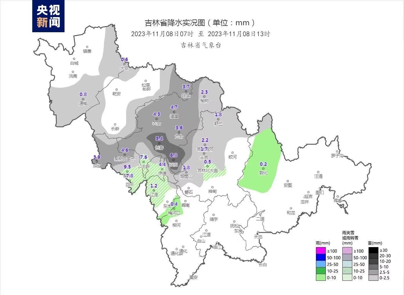 受低空冷切變影響,11月8日早晨開始,吉林省大部出現明顯雨雪天氣,并伴有相態(tài)轉換。當前,吉林省大部分地區(qū)出現了積雪,最大積雪深度出現在榆樹市,積雪深度為30厘米。