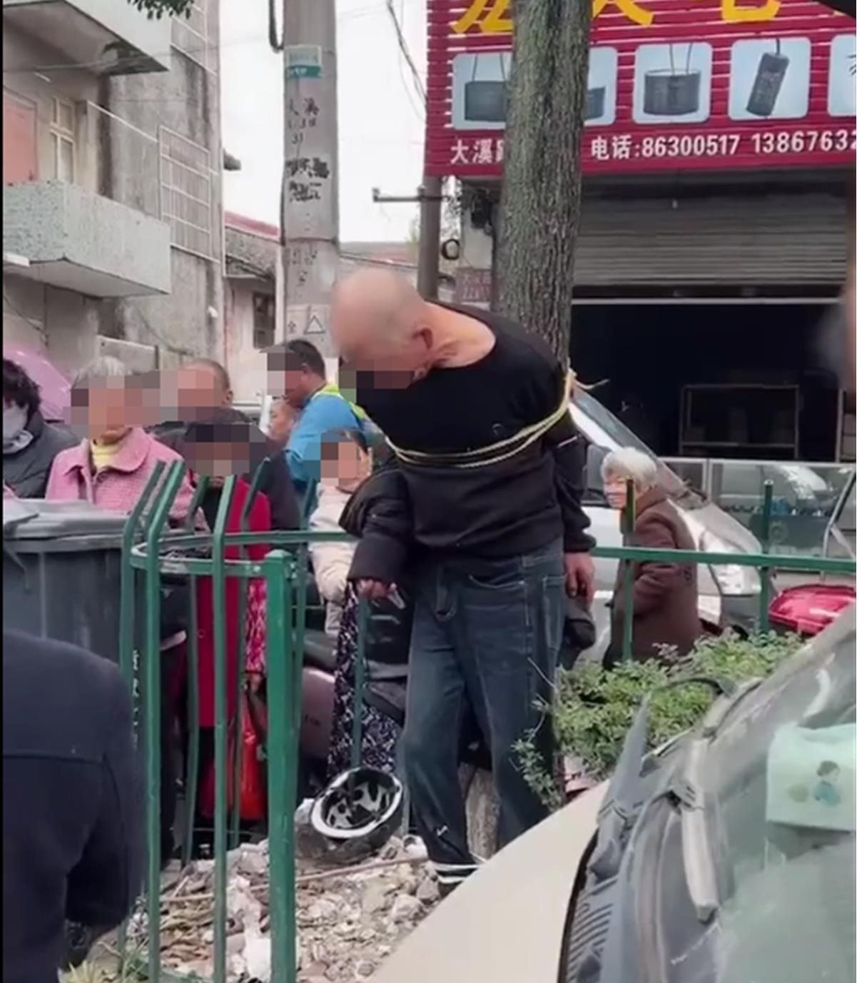 ·浙江溫嶺一男子疑偷錢(qián)遭綁樹(shù)上示眾扇耳光,知情人稱其已被派出所帶走。