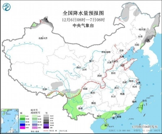 全國降水量預報圖(12月6日08時-7日08時)
