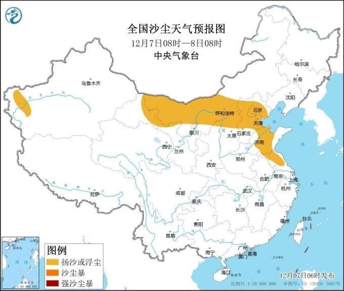另外,7日,內(nèi)蒙古中西部、甘肅西部、陜西北部、山西北部、北京、天津、河北中北部、山東西部、江蘇北部等地的部分地區(qū)有揚(yáng)沙或浮塵天氣。