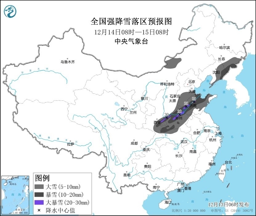 除寒潮天氣外,大范圍的雨雪天氣也將上線。預(yù)計(jì)12月13日至15日,新疆北部、西北地區(qū)東部、內(nèi)蒙古、華北、黃淮中北部、東北地區(qū)中南部及青藏高原東部有小到中雪,部分地區(qū)有大到暴雪,局地有大暴雪;黃淮南部、江淮、江漢、重慶北部及江南等地部分地區(qū)有中到大雨、局地暴雨。