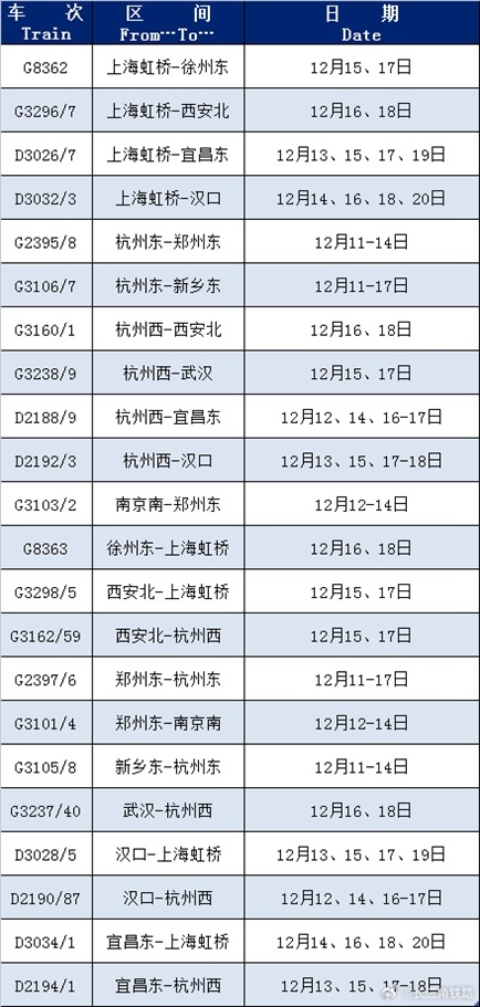 具體車次如圖: