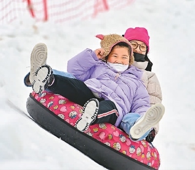 游客在山東省青州市駝山滑雪場體驗雪圈項目。王繼林?jǐn)z(人民視覺)