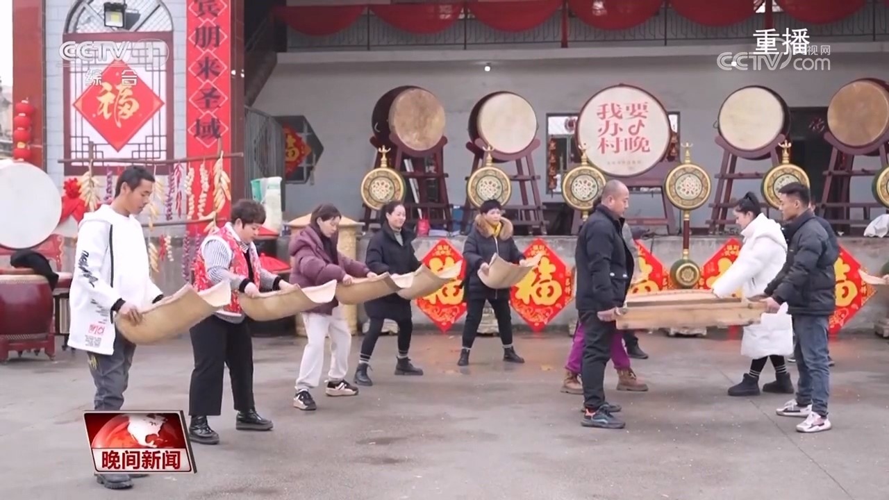 央視網(wǎng)消息:春節(jié)臨近,1月20日下午,在山西省臨汾市堯都區(qū)泊莊,一場年味十足的村晚火出圈。整場村晚以鑼鼓為主題,傳統(tǒng)文化與流行音樂相結(jié)合,五谷雜糧和農(nóng)具當(dāng)“樂器”,老人孩子齊上陣,用籌辦人張勇的話說:“要讓人們聽到年的聲音”。