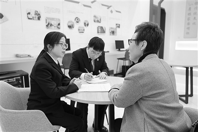 圖為案件承辦人向該案委托代理人深入了解案件情況,共同尋找實(shí)質(zhì)解紛之法。