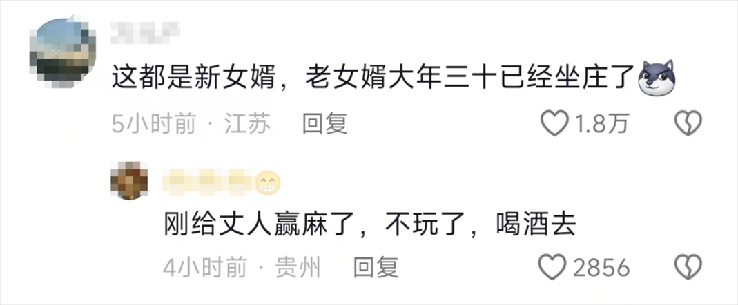 不過(guò),網(wǎng)友們指出,這些顯得格格不入的都是新女婿,老女婿大年三十已經(jīng)坐莊了,懂事的女婿還讓丈人贏錢了。