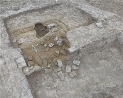 此外,考古隊員在最大的房址發(fā)現(xiàn)方形磚砌祭臺。專家表示,磚砌祭臺屬熱水墓群中的首次發(fā)現(xiàn),祭臺中發(fā)現(xiàn)大量磚塊。通過陵園及祭祀建筑的規(guī)模、數(shù)量等線索推測,這個墓葬的規(guī)格、墓主人的身份等級要高于2018血渭一號墓。