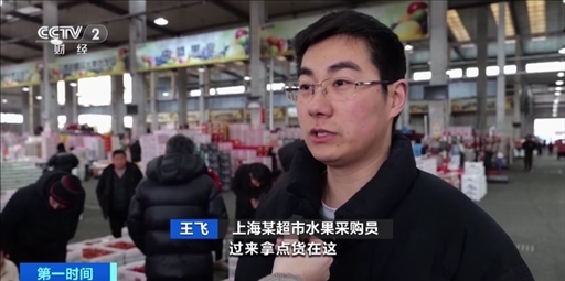 在上海青浦的西郊國際農(nóng)產(chǎn)品交易中心,草莓專區(qū)里人頭攢動。正在采購草莓的王飛表示,晚上7點左右,熱鬧的草莓區(qū)域就會被搬空,所以抓緊時間拿貨。
