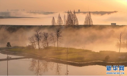 3月20日清晨,在安徽省池州市,薄霧輕籠下的秋浦河,如夢似幻,與若隱若現(xiàn)的村莊、高鐵構(gòu)成一幅流動(dòng)的水墨畫卷。