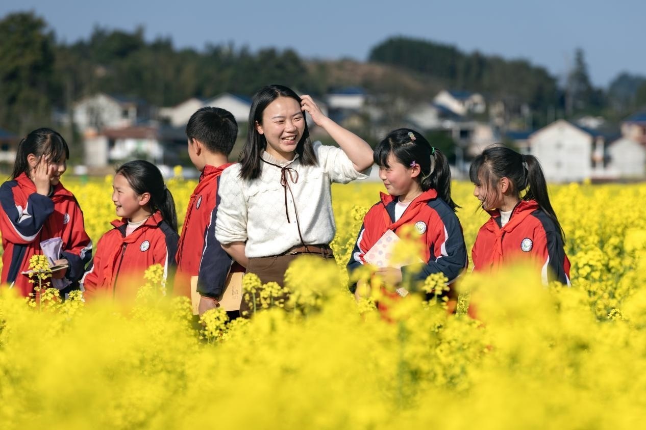 李柏霖不愿意讓孩子們覺得這樣的情緒是生活的全部。她把課堂搬到野外,在“搖搖花”開的時候帶孩子們去看“搖搖花”,油菜花開時去看油菜花?;ㄒ彩窃姡亦l(xiāng)也是詩——若非如此,老師為什么走了又回呢?