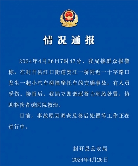 ·廣東封開縣警方:一小汽車沖撞多輛摩托車,有人受傷。