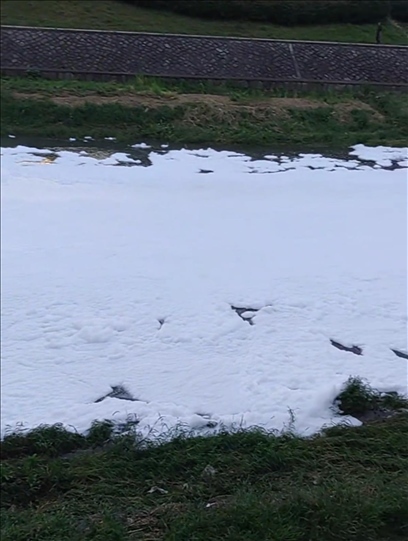 ·浙江諸暨五泄江一江段出現(xiàn)大量白色泡沫,環(huán)保部門回應(yīng):可能是洗滌劑滲透到江里,如有偷排會(huì)依法處理。