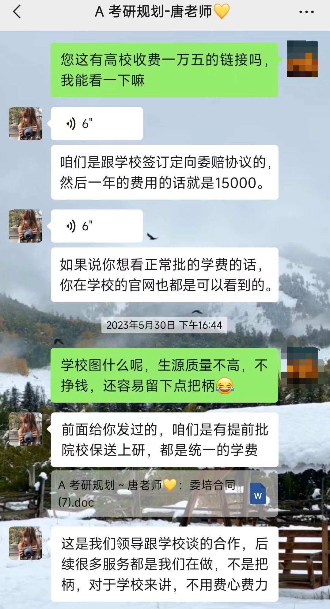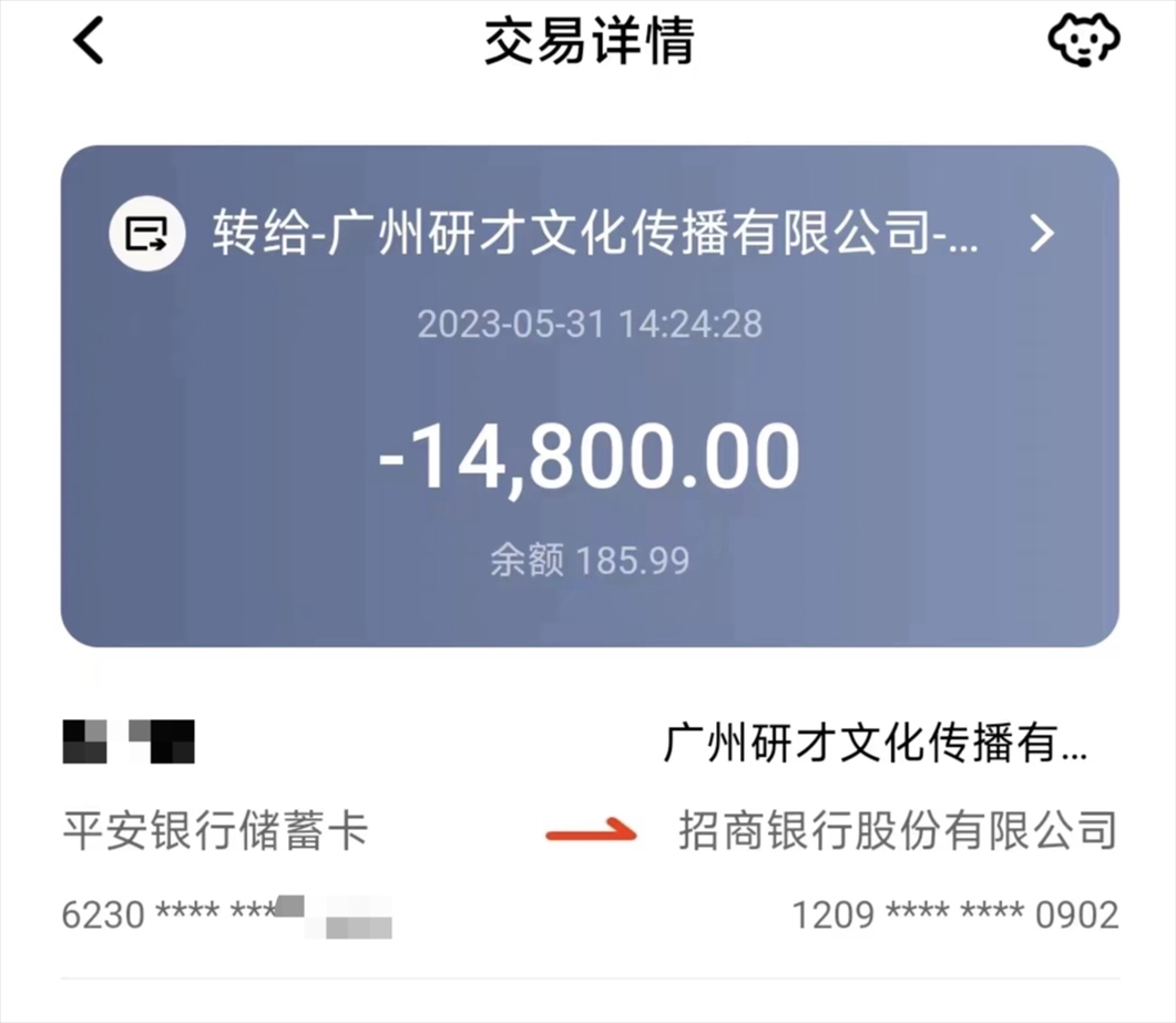 來自北京的陳鑫(化名)說,他被上述話術(shù)吸引,去年5月報了廣州研才教育機構(gòu)的“院校推免保送研究生課程”。咨詢時,招生老師向他承諾“渠道直錄,考研保過”,并稱還能通過“院校委培”的方式,幫他把20萬元左右的MBA學(xué)費降為1.5萬元。
