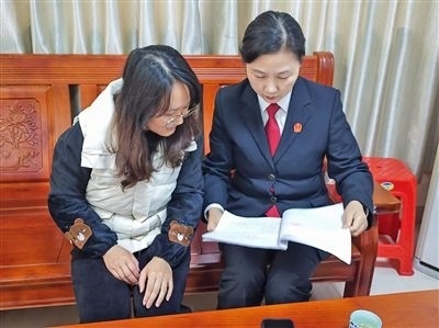 黃麗芳正在指導(dǎo)當(dāng)事人辦理執(zhí)行手續(xù)。 徐志毅 攝
