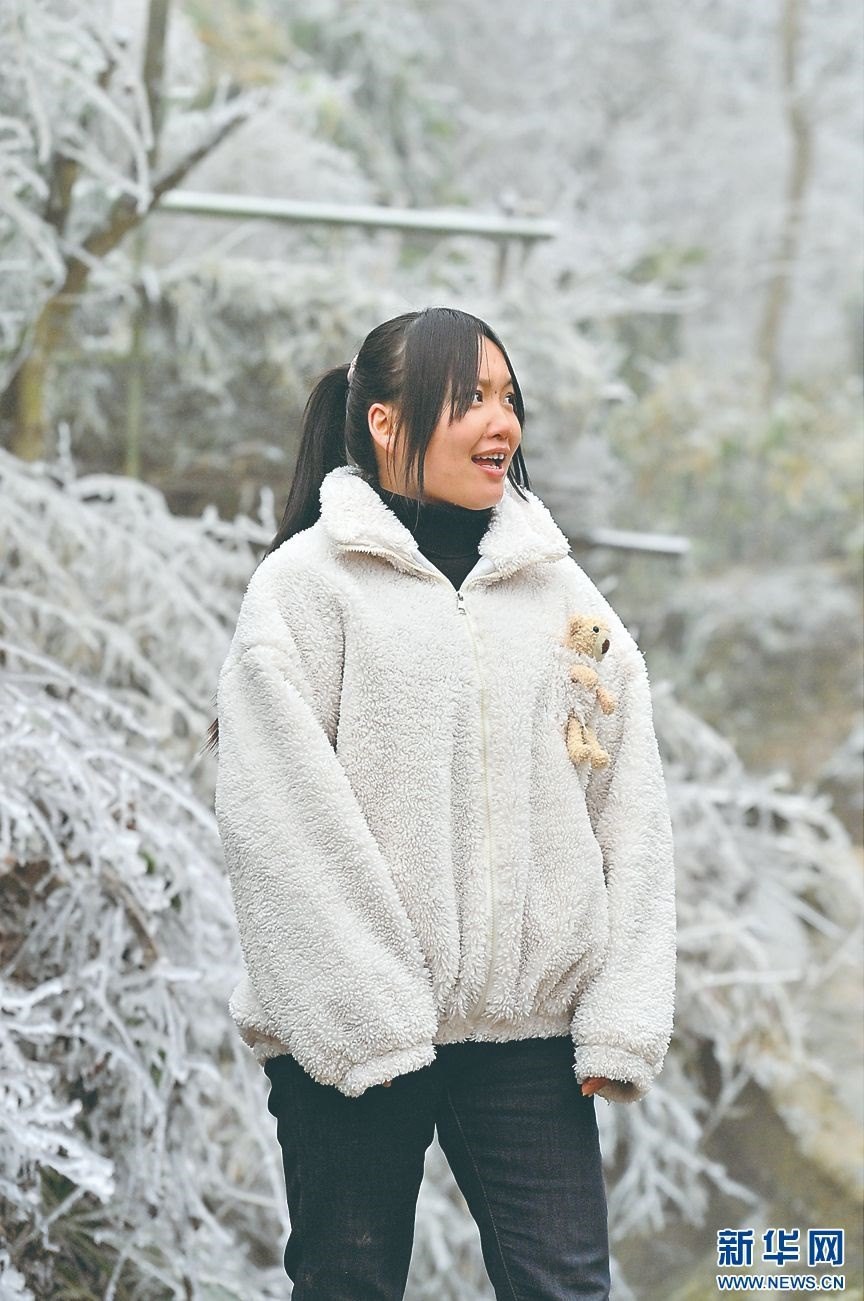 結(jié)冰的山路很滑,下坡時(shí),鳳艷萍試圖抓住路邊的雜草,但覆冰的雜草也很滑,一不小心,整個(gè)人就滑到坡底,還好人沒受傷。