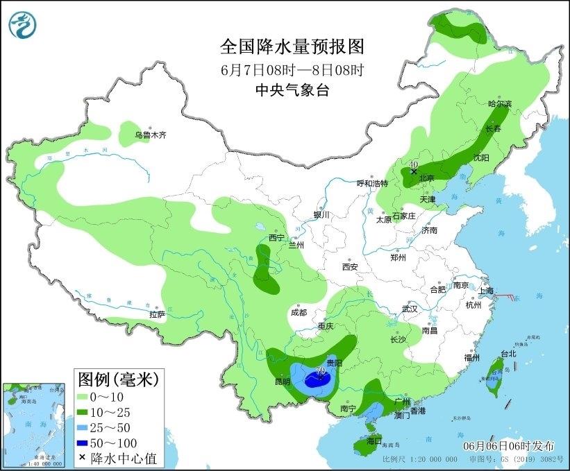 明天,內蒙古東北部、東北地區(qū)西部、青海南部、華北北部、川西高原北部、西南地區(qū)南部、華南北部和南部、臺灣島等地部分地區(qū)有中到大雨,其中,貴州西南部、云南東南部、廣西西北部等地部分地區(qū)有暴雨(50~70毫米)。
