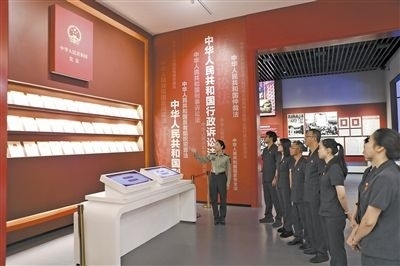 近日,江西省瑞金市人民法院分批次組織黨員干部前往中華蘇維埃共和國(guó)法制建設(shè)紀(jì)念館參觀學(xué)習(xí),共同回顧紅色法治發(fā)展軌跡,賡續(xù)紅色法治血脈。紀(jì)念館中復(fù)原的“七里坪革命法庭”“馬錫五下鄉(xiāng)斷案”場(chǎng)景逼真且震撼,黨員干部不時(shí)駐足觀看,互相交流討論。圖為法院黨員干部聆聽講解。