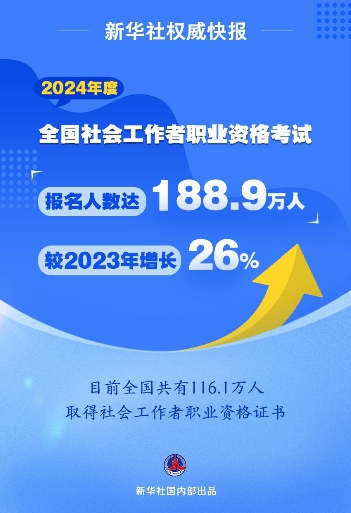 新華社北京6月16日電(記者馮家順)2024年度全國社會工作者職業(yè)資格考試于6月15日至16日舉行。記者16日從中央社會工作部獲悉,今年考試報名人數(shù)達(dá)188.9萬人,較2023年增長26%,再創(chuàng)歷史新高。