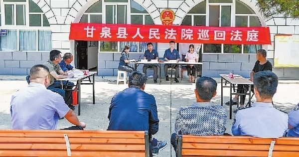 近日,陜西省甘泉縣人民法院道鎮(zhèn)人民法庭在審理一起侵害集體經(jīng)濟(jì)組織成員權(quán)益糾紛案件時,考慮到本案為該區(qū)域多發(fā)常見類糾紛,遂將巡回審判庭搬進(jìn)道鎮(zhèn)五里橋村,在窯洞前就地審理。庭審中,法官充分聽取雙方當(dāng)事人意見,就爭議焦點進(jìn)行釋法明理。經(jīng)過一個多小時的調(diào)解,雖因雙方訴求差距過大未最終達(dá)成調(diào)解協(xié)議,但極大緩和了雙方矛盾。下一步,法官將繼續(xù)就雙方當(dāng)事人的訴求研判方案,組織調(diào)解。庭審結(jié)束后,法官向群眾介紹了本案相關(guān)的法律規(guī)定,就大家關(guān)心的法律問題進(jìn)行答疑解惑。圖為巡回審判現(xiàn)場。(本報記者 劉輝 本報通訊員 李樂 攝)