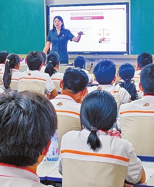 近日,湖北省保康縣人民法院蒲公英法治宣講隊成員張曉麗走進(jìn)??悼h第一中學(xué),結(jié)合高一新生年齡特點,詳細(xì)講解了預(yù)防未成年人犯罪法等法律知識,深入剖析校園暴力、猥褻性侵、網(wǎng)絡(luò)詐騙等危害,強(qiáng)調(diào)學(xué)法、守法、知法、懂法的重要性,引導(dǎo)學(xué)生們樹立正確的法治觀念。圖為張曉麗向同學(xué)們講解法律知識。(本報記者 丁俐 本報通訊員 王韻婕 攝)