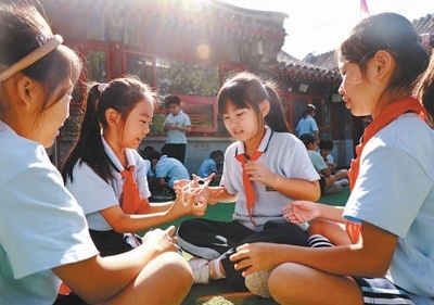 北京市東城區(qū)黑芝麻胡同小學(xué)“課間一刻鐘”,學(xué)生們在做游戲。黃 超 郭 謙攝影報道