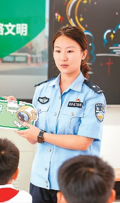 江西省宜春市公安局袁州分局鳳凰派出所民警在黃頗小學(xué)向?qū)W生講解防范網(wǎng)絡(luò)詐騙等知識(shí)。周 亮攝(人民視覺(jué))