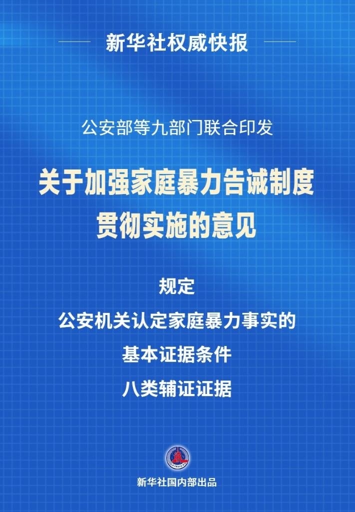 近日,公安部、中央政法委、最高人民法院、教育部、民政部、司法部、國(guó)家衛(wèi)生健康委、全國(guó)婦聯(lián)、國(guó)務(wù)院婦兒工委辦聯(lián)合印發(fā)《關(guān)于加強(qiáng)家庭暴力告誡制度貫徹實(shí)施的意見》。