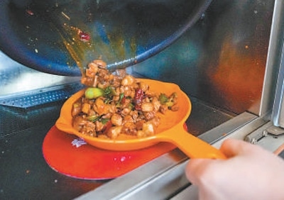 劉楊現(xiàn)場(chǎng)下單了一份干燒雙菇,炒好后,打開(kāi)柜門的那一刻,香氣撲面而來(lái)。“肯定比我自己做的好吃,比一些餐廳的味道也好?!眲钫f(shuō):“如果家中來(lái)客,炒3個(gè)菜帶回家,總共也就幾十元,比下館子劃算得多?!?/p>