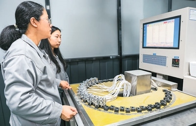 加強(qiáng)食品安全監(jiān)管,為冷鏈設(shè)備制造企業(yè)帶來(lái)了發(fā)展機(jī)遇。圖為西科冷鏈江門制造基地的產(chǎn)品實(shí)驗(yàn)室工程師在進(jìn)行電子元件耐用性測(cè)試。