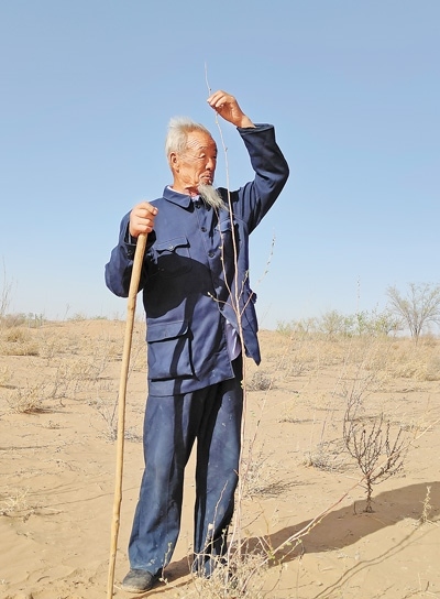 王銀吉82歲的父親王天昌聽(tīng)說(shuō)草方格里發(fā)芽了,說(shuō)道:“苦沒(méi)有白受!”