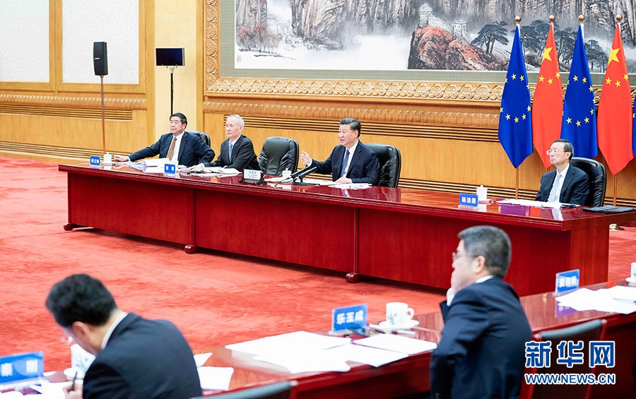 新華社北京9月14日電國家主席習近平14日晚在北京同歐盟輪值主席國德國總理默克爾、歐洲理事會主席米歇爾、歐盟委員會主席馮德萊恩共同舉行會晤,會晤以視頻方式舉行。中德歐領導人就中歐關系深入交換意見,為下階段中歐關系規(guī)劃方向,確定重點領域,一致同意加強溝通協(xié)調合作,確保今后中歐之間一系列重大政治議程取得成功,深化互信,實現(xiàn)互利共贏,堅持維護多邊主義,共同應對全球性挑戰(zhàn),推動中歐關系邁向更高水平。中歐雙方宣布簽署《中歐地理標志協(xié)定》,確認加快中歐投資協(xié)定談判,實現(xiàn)年內完成談判的目標。中歐決定建立環(huán)境與氣候高層對話和數(shù)字領域高層對話,打造中歐綠色合作伙伴、數(shù)字合作伙伴關系。