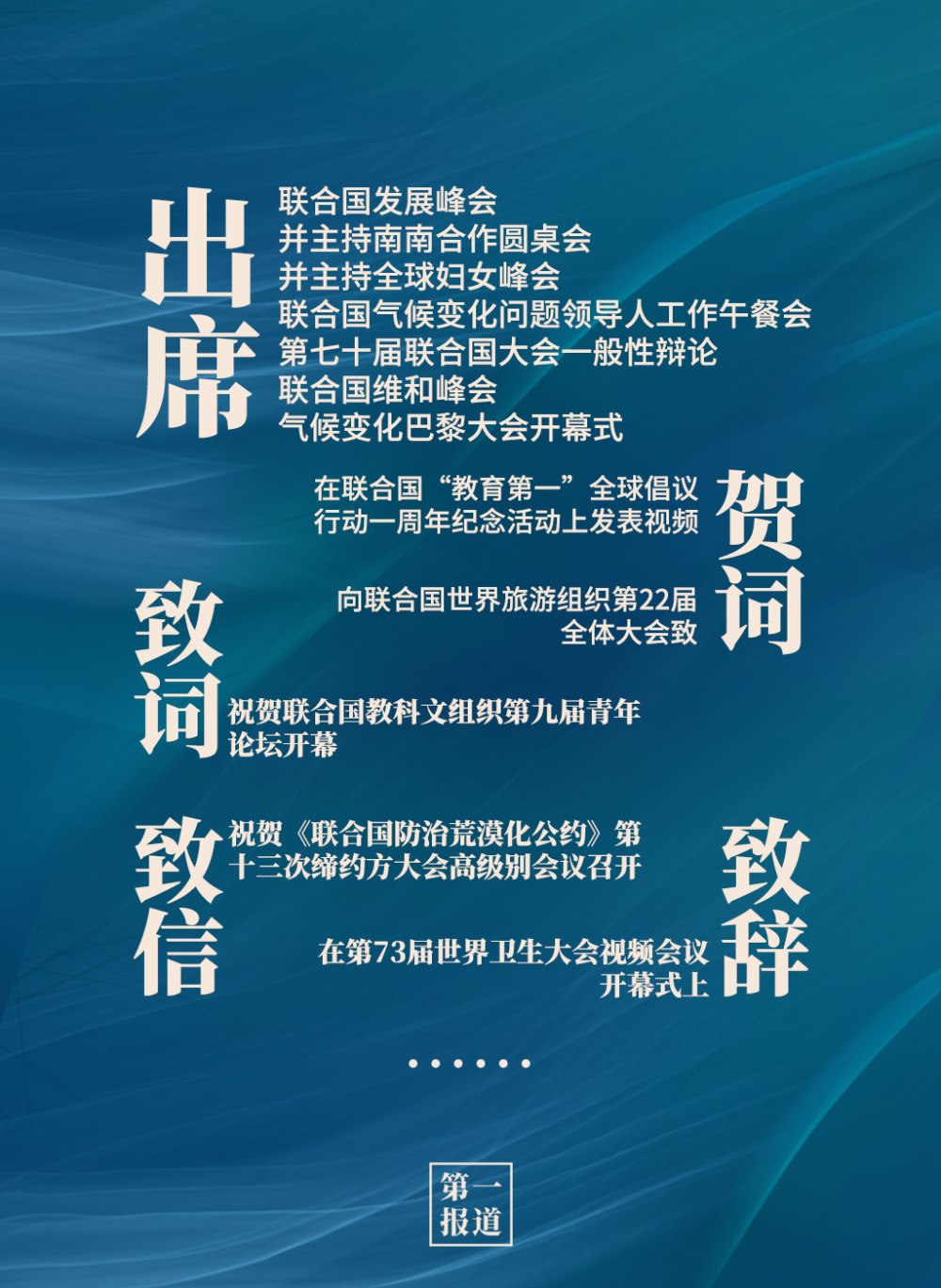 2013年以來(lái),習(xí)主席通過(guò)出席聯(lián)合國(guó)活動(dòng)、向聯(lián)合國(guó)活動(dòng)致信函等方式,進(jìn)一步深化中國(guó)同聯(lián)合國(guó)的合作,為維護(hù)世界和平、促進(jìn)共同繁榮、完善全球治理貢獻(xiàn)中國(guó)智慧,注入中國(guó)動(dòng)力。