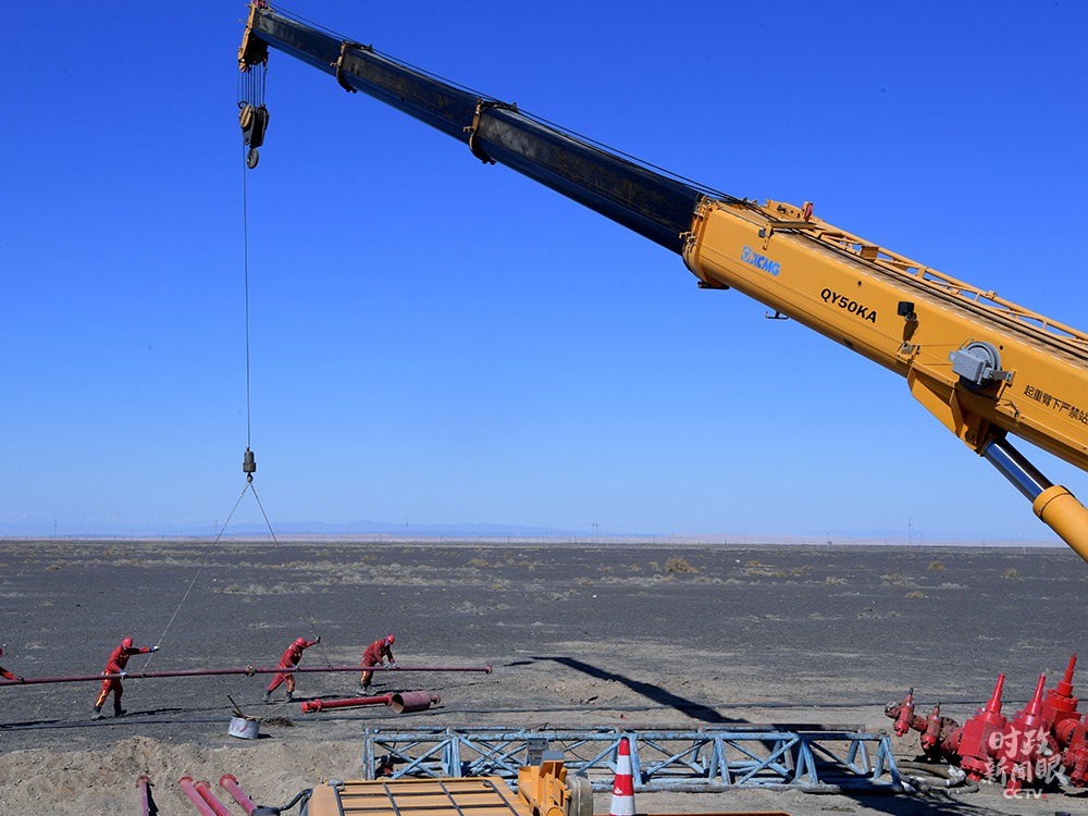 △克拉瑪依地區(qū),油田勘探開(kāi)發(fā)施工現(xiàn)場(chǎng)。