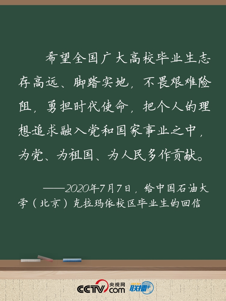 7月7日,習(xí)近平總書記給中國石油大學(xué)(北京)克拉瑪依校區(qū)畢業(yè)生回信,肯定他們到邊疆基層工作的選擇,并對(duì)廣大高校畢業(yè)生提出殷切期望。