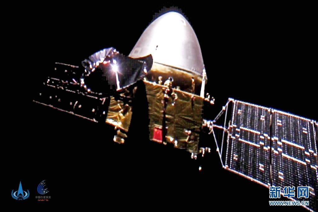 2020年10月1日,國(guó)家航天局發(fā)布我國(guó)首次火星探測(cè)任務(wù)天問一號(hào)探測(cè)器飛行圖像。新華社發(fā)(國(guó)家航天局供圖)