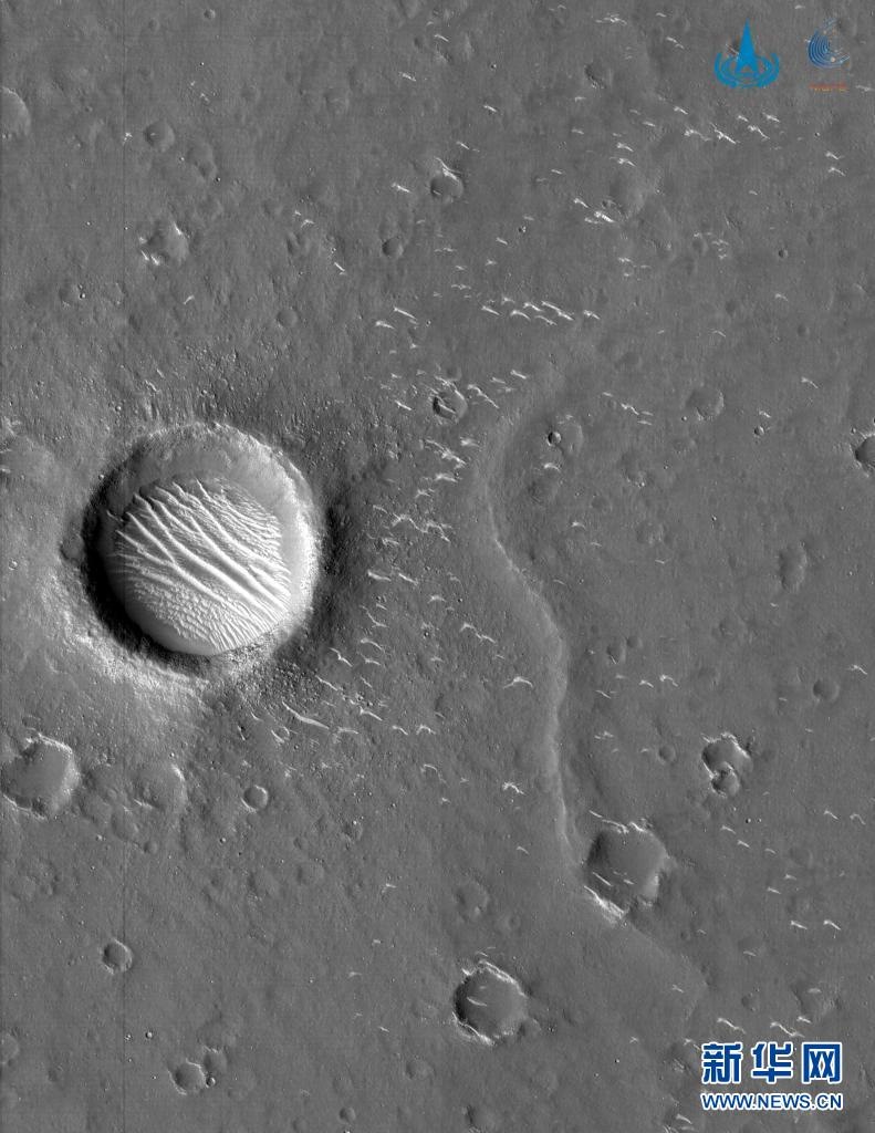 2021年2月12日,國(guó)家航天局發(fā)布天問一號(hào)制動(dòng)捕獲過程動(dòng)態(tài)影像,火星大氣層及表面形貌清晰可見。