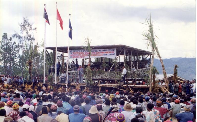 圖為1998年,在巴新的菌草技術(shù)重演示范試驗成功現(xiàn)場會現(xiàn)場。(國家菌草工程技術(shù)研究中心供圖)