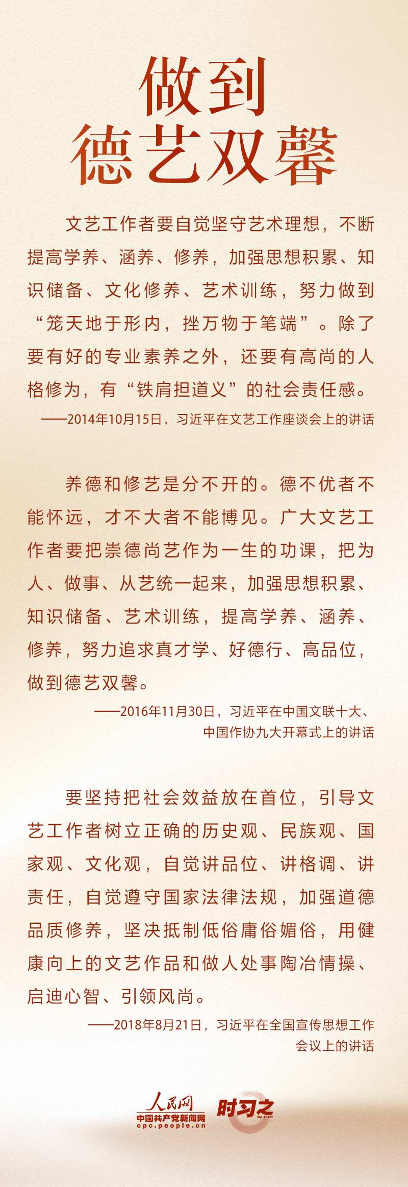 文運(yùn)同國運(yùn)相牽,文脈同國脈相連。新時代文藝工作者承擔(dān)著記錄新時代、書寫新時代、謳歌新時代的重大使命。“文藝是鑄造靈魂的工程,文藝工作者是靈魂的工程師?!秉h的十八大以來,習(xí)近平不斷激勵文藝工作者不辜負(fù)時代召喚、不辜負(fù)人民期待,以德服人、以文化人。