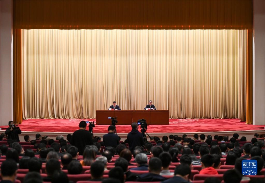 2021年3月16日,黨史學(xué)習(xí)教育中央宣講團(tuán)首場報告會在北京舉行。這是中央宣講團(tuán)成員、中央黨史和文獻(xiàn)研究院院長曲青山(右)在報告會上作宣講報告。新華社記者陳曄華攝