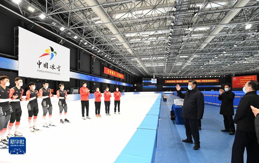 2022年1月4日,中共中央總書記、國家主席、中央軍委主席習(xí)近平在北京考察2022年冬奧會(huì)、冬殘奧會(huì)籌辦備賽工作。這是4日下午,習(xí)近平在二七廠冰雪項(xiàng)目訓(xùn)練基地速滑館,向參訓(xùn)運(yùn)動(dòng)員、教練員表示慰問。新華社記者謝環(huán)馳攝