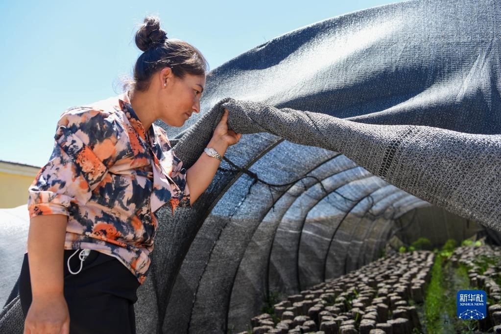在新疆烏什縣依麻木鎮(zhèn),在新疆維吾爾自治區(qū)黨委組織部、老干部局駐托萬克麥蓋提村“訪民情惠民生聚民心”工作隊(duì)的幫助下,不少村民通過培植木耳增收致富(2022年6月7日攝)。新華社記者